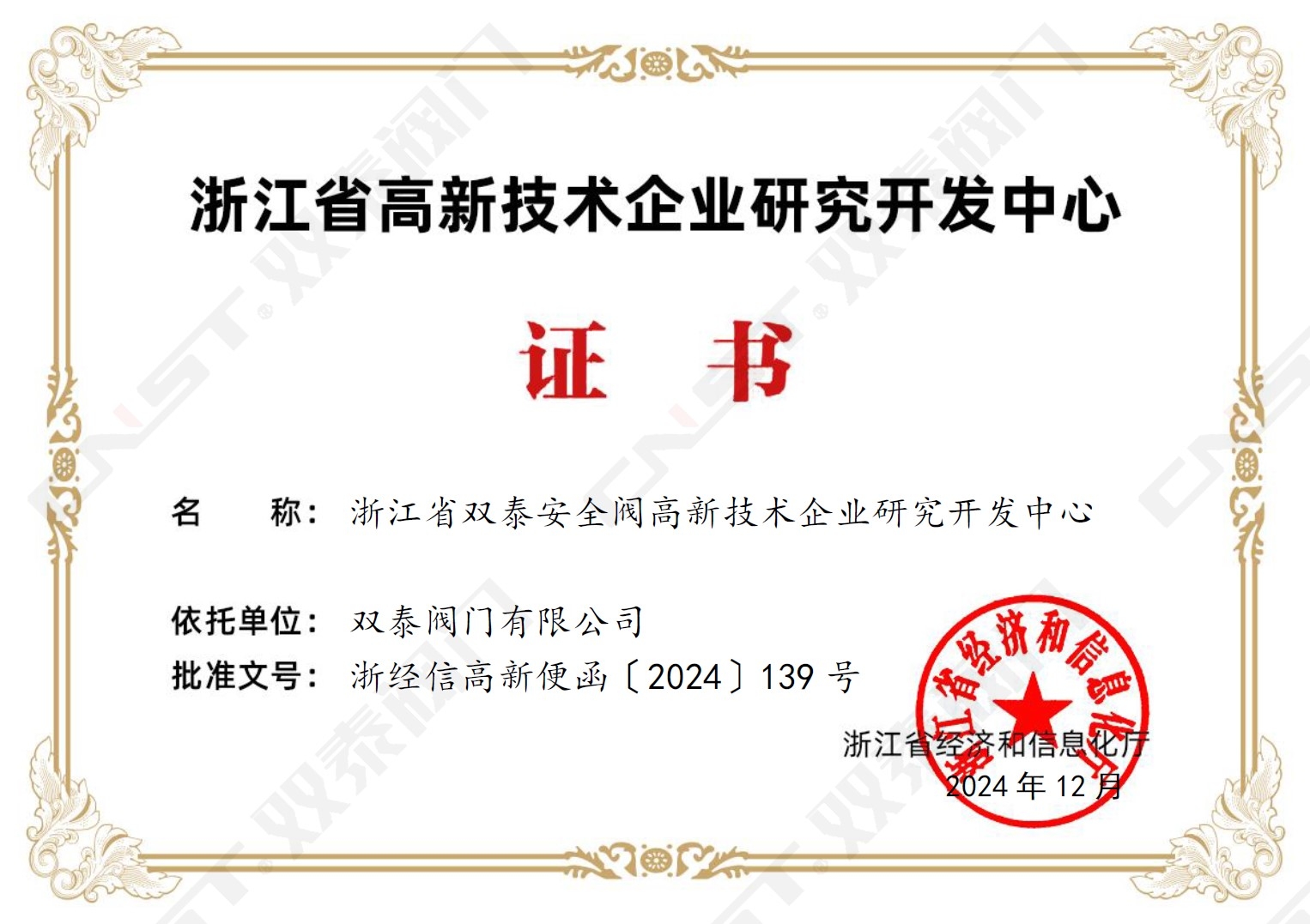 喜訊!雙泰閥門有限公司憑借在安全閥領(lǐng)域的技術(shù)創(chuàng)新和研發(fā)實(shí)力,成功榮獲“浙江省雙泰安全閥高新技術(shù)企業(yè)研究開發(fā)中心”稱號!這是對雙泰閥門多年來堅(jiān)持科技創(chuàng)新、追求卓越品質(zhì)的充分肯定,也標(biāo)志著公司在安全閥領(lǐng)域的技術(shù)研發(fā)實(shí)力邁上了新臺階。未來,雙泰閥門將繼續(xù)加大研發(fā)投入,致力于為客戶提供更安全、更可靠、更智能的閥門解決方案,為推動行業(yè)技術(shù)進(jìn)步貢獻(xiàn)力量!